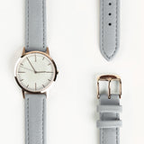 As seen in IN STYLE, the limited edition 30mm rose gold and grey leather women's watch combines the classic detailing of vintage watches with a modern minimalist finish.