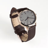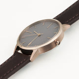 As seen in WALLPAPER, the limited edition 30mm rose gold and dark brown women's watch combines the classic detailing of vintage watches with a modern minimalist finish.